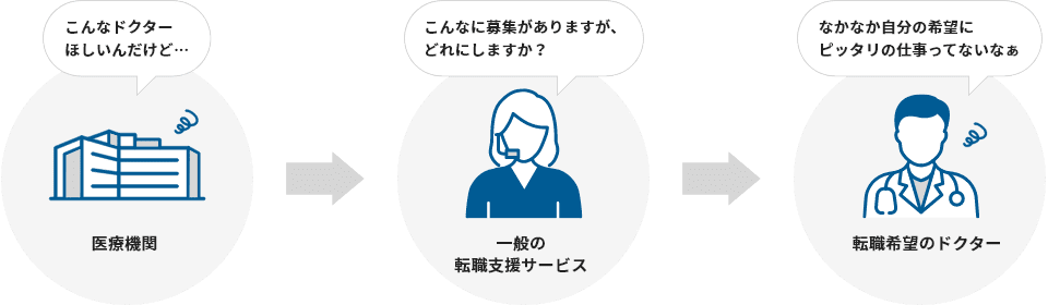 一般の転職支援サービスは、医療機関の求人情報に合わせた紹介なので